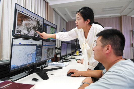 8月26日,秦州区气象局工作人员在观测天气走势情况。近年来,我市气象部门加强气象监测预警,通过现代化观测设备有效提升天气预报精准度,筑牢气象防灾减灾防线。