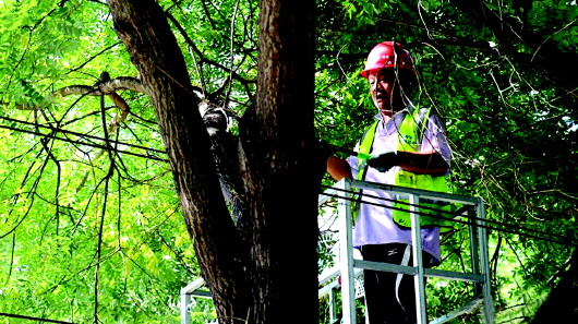 大树“理发”除隐患居民出行更安全