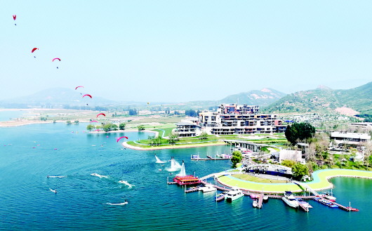 9月15日拍摄的石家庄市元氏县蟠龙湖景区一角(无人机照片)。