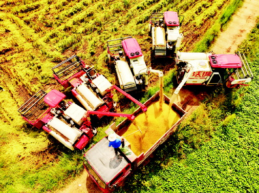 9月15日,四川省达州市渠县宝城镇马鞍村农民在装卸刚收割的稻谷。