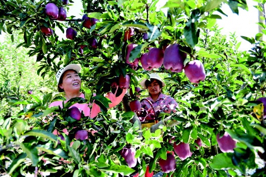 在花牛苹果种植基地,一颗颗红苹果挂满枝头,果农们笑逐颜开忙着采摘,各地客商纷至沓来将天水花牛苹果销往国内外。在食用菌种植基地,工人们采收蘑菇、木耳,分拣装箱。在连片的汉麻田里,一人多高的麻秆长势喜人,农民们手持镰刀,熟练地进行收割。在辣椒种植基地,采摘的红辣椒铺成一片进行晾晒……农民们迎来了一年好收成。