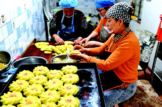 9月25日,秦州区一家甜食店的员工正在制作传统手工月饼,吸引市民前来购买。 天水传统手工月饼的制作包括揉面、包馅、夹花、刷油、烤饼等步骤,多以五仁馅为主。月饼馅包含核桃、花生、瓜子仁、白芝麻、黑芝麻和玫瑰花丝等食材。每到中秋节临近,市民都会制作或选购传统手工月饼。