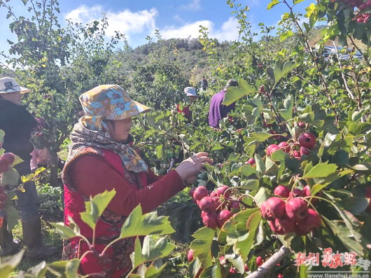 10月15日,秦州区牡丹镇的农户在采摘山楂。眼下,秦州区牡丹镇的天水兴华荣生态农业产业园千亩山楂种植基地迎来丰收旺季。近年来,该产业园采用“合作社+农户+基地”的运营模式,不断完善循环农业产业建设,形成了集种植、采收、加工、销售于一体的完整产业链,先后带动超过500余名农户实现家门口稳定就业增收。 杨文慧 王歧 摄
