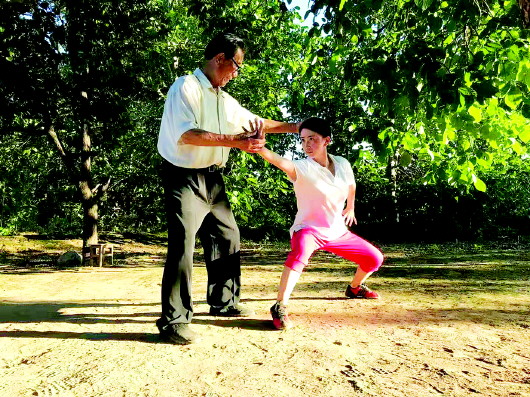 当时记者采访的时候,刘香兰女士正在张家大院里习练通备拳艺。