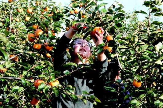10月20日,甘谷县海罡种养殖农民专业合作社的柿子园里,游客正在采摘品尝新鲜的水果柿子。该合作社选育的水果柿子,果实口感脆甜,肉质细腻嫩滑,摘下后无须任何加工处理,消费者便能直接品尝到这份天然的清甜,因此深受消费者的喜爱,吸引了众多市民前来体验秋日采摘的乐趣。