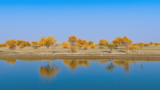 在新疆和田地区和田县翡翠湖,成片胡杨