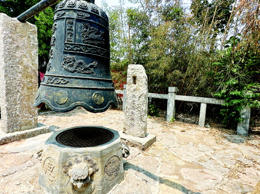 距离磨盘不远的两处绿草茵茵的花坛中间,是用石材呈现的先天八卦太极图。虽历经风雨和暴晒,依然清晰如新。黑白鱼形图案相互缠绕,阴阳相生、周而复始的宇宙观跃然眼前。黄艳生说:“先民们在遥远的古代,就能通过观察自然现象总结出如此深刻的哲学思想,令人感叹他们的智慧和对自然规律的洞察。这八卦太极图不仅是伏羲文化的象征,更是中华民族思维方式的重要体现,至今仍在影响我们的生活和文化。”