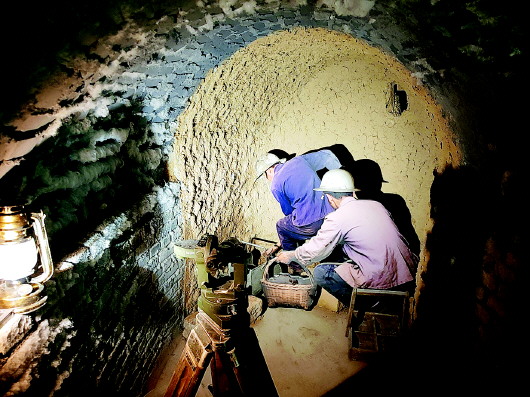 从厂史馆到雪莱纺织生产线,再到纺织研学馆,文艺工作者的脚步缓慢而郑重。在众多展馆里,天水三线建设记忆馆尤其让人频频驻足。当那扇玻璃门缓缓开启,浓郁的历史气息扑面而来——洞内墙壁上,“备战备荒为人民”的红色标语仍依稀可辨;展台上,煤油灯、手摇发电机、应急粮缸等实物整齐陈列。无论是触手可及的实物、定格瞬间的图片,还是记录过往的文字,都将人们的思绪瞬间拉回那个喊着“备战备荒为人民”“好人好马上三线”的激情燃烧岁月。“记得小时候常听父亲说,当年的防空洞能藏下半个镇子的人,今天总算亲眼看到了。”采访中,记者听到年轻的作家一边参观一边感叹道。