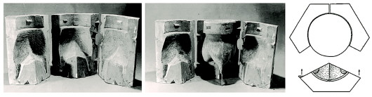 战国时期,青铜鬲大多采用陶范法铸造。先制作出与鬲形状相同的泥模,在泥模上雕刻纹饰,然后翻制外范,再将泥模刮去一层作为内范,内外范之间的空隙就是鬲的厚度,浇注青铜溶液后,冷却即可成型。