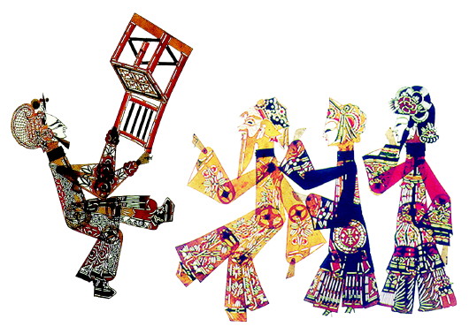 皮影戏,又称“灯影戏”,是一种以兽皮或纸板做成人或物的剪影,以表演故事的民间戏剧。表演时,艺人在白色幕布后面,一边操纵影人,一边用当地流行的曲调讲述故事,同时配以打击乐器和弦乐,具有浓厚的乡土气息。通常,一个皮影人物要用五根竹棍操纵,艺人手指灵活,常常表演得让观众眼花缭乱。他们不仅手上功夫绝妙高超,嘴上还要说、念、打、唱,脚下更是要制动锣鼓。往往高手能同时操控多个角色,演唱不同的声音,淋漓尽致地表现各种各样性格迥异的戏剧人物。而观者也以能看到名家演出为荣,仿佛就像今天的人们观看明星演唱会一般。