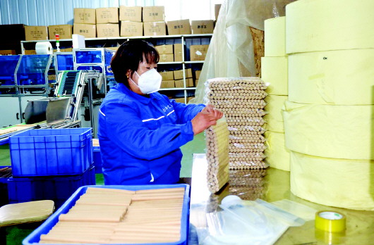 11月18日,秦州区齐寿镇张赵村的天水古丰生态农业发展有限公司艾草加工车间内,工人们将艾条进行打包、贴标、装箱,即将发往各地市场。