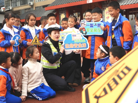 在“全国交通安全日”来临之际,各地开展交通安全进校园活动,为同学们普及交通安全知识,培养交通安全意识。 新华社发(邓良奎 摄)