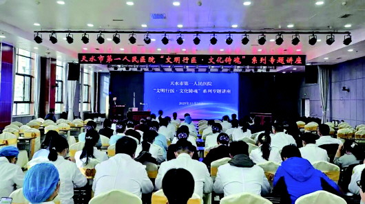 为深入推进全国文明单位创建工作,持续厚植医院文化底蕴,涵养医务人员职业精神,近日,市第一人民医院联合工会精心策划并组织“以书养心”书法艺术与健康实践专题讲座,特别邀请天水师范大学王永斌副教授担任主讲嘉宾。王永斌结合医学领域“病由心生”的健康理念,重点阐述“以书养心”对调节医务人员情绪、涵养心性的积极作用,引导在场职工深刻理解人文素养与医疗服务深度融合的重要意义,为今后更好地践行“以患者为中心”的服务宗旨奠定思想基础。