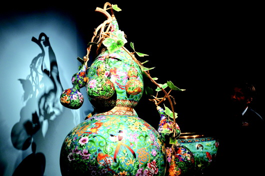 12月15日,观众参观展出的景泰蓝作品《福禄万代》。