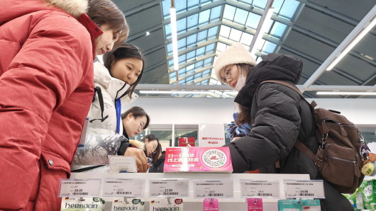 12月21日,消费者在银川火车站内的中欧班列进口商品(保税)店内选购商品。银川火车站中欧班列进口商品(保税)店依托中欧班列回程车的物流运输优势,将中欧班列沿线国家和地区的优质特色商品进口到国内,让广大旅客享受到“一带一路”倡议的普惠福利。 新华社记者 邢广利 摄