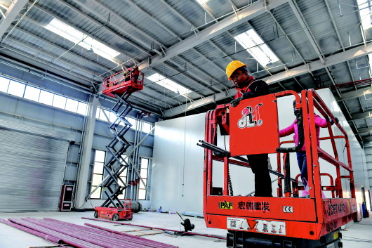 12月22日,甘谷县安远镇西城村农产品仓储及配送中心项目现场,工人们正进行收尾安装工作。