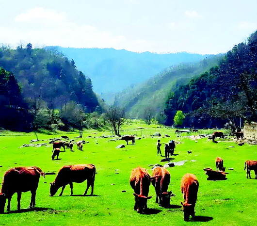 张家川的山水之间,蕴藏着三千年不变的生态密码。万亩天然草场如碧波翻涌,河流蜿蜒如带,山泉清冽甘醇,与“汧渭泱泱”的悠远意境一脉相承。朝露暮霭间,牛群漫步溪畔,啜饮千年灵泉,嚼食带露珍草,将关陇大地的精魂与水草的灵韵,细细融入每寸肌理。