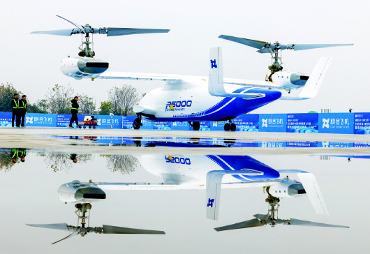 12月28日,由联合飞机集团自主研制的6吨级倾转旋翼无人飞行器“镧影R6000”在四川省德阳什邡市完成了首次飞行,标志着我国在倾转旋翼这一关键技术上实现突破。据了解,作为一款创新机型,“镧影R6000”通过倾转旋翼设计技术,实现旋翼姿态在垂直起降与高速平飞模态之间的无缝、安全平稳切换,其巡航速度达到550公里/小时,最大航程长达4000公里,实用升限7620米,最大商载2000公斤。 新华社发(尹钢 摄)