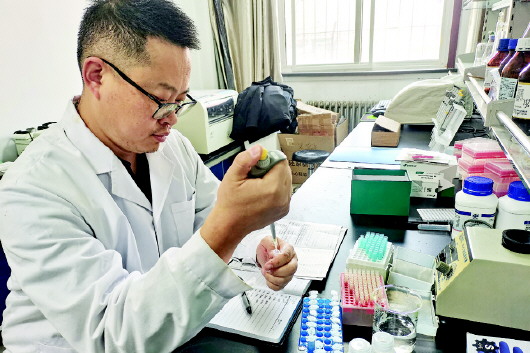 2025年12月31日上午,天水市农业科学研究所薯类研究中心主任、副研究员王鹏正在实验室进行马铃薯品质分析实验。
