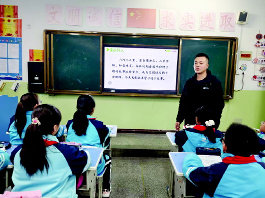 元旦前夕,记者来到清水县轩辕小学采访,该校教师崔彦斌正在为七年级的同学们上语文课。他时而旁征博引,时而绘声绘色,同学们认真地听着,沉浸在知识的海洋中。