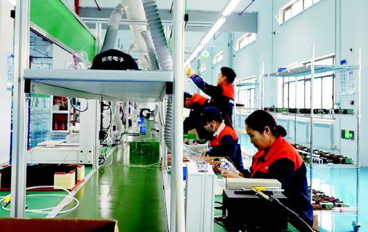 新年伊始,甘肃驭龙电子科技有限公司的工人正在组装电子火焰灶。