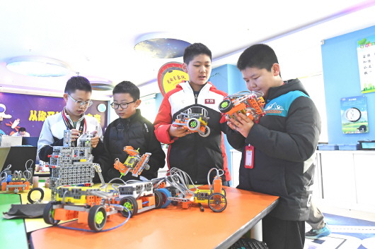 1月14日,孩子们在市青少年活动中心参加机器人编程活动。近日,天水市各中小学校陆续放寒假,学生们在假期积极参与文化体育活动,陶冶情操、锻炼体魄、增长知识,乐享多彩寒假。