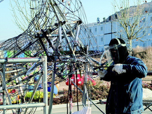 1月16日,工人正加紧制作彩灯、铺设线路,积极筹备“羲皇故里·龙城天水”甘肃天水2026迎春非遗彩灯节。目前整体布展进度已达70%,各项工作全面进入冲刺阶段。据了解,彩灯节选址在秦州区太京镇李家台子村,占地面积300多亩,精心设置非遗灯组、民俗演绎等七大板块。彩灯设计中融入天水历史人物、麻辣烫等本土元素。预计于2月10日亮灯,持续至3月10日,届时将为市民游客带来一场兼具年味与地方特色的新春文化盛宴。 天水融媒记者曹润彬 赵军霞 摄