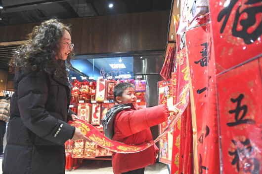 1月23日,农历腊月时节,天水城区的商超集市热闹红火、年味浓厚,各类商品琳琅满目。市民穿梭其间,精心选购蔬菜、水果、坚果等年货,红彤彤的春联、灯笼更是成了抢手货,人们的脸上满是喜悦,处处洋溢着喜庆祥和的新春氛围。