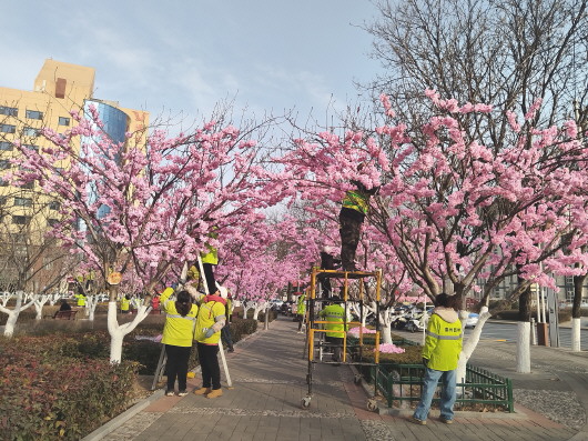 花儿“绽放”年味浓扮靓街景迎新春