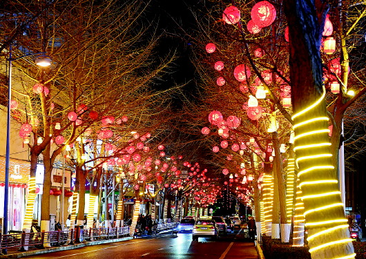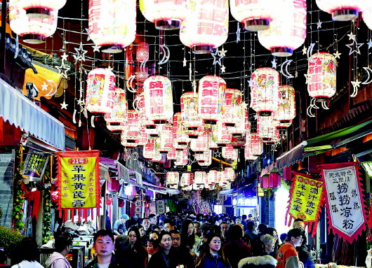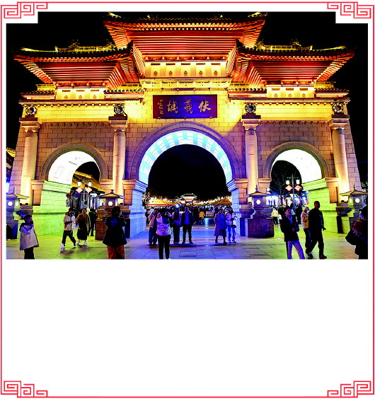 春节期间的天水伏羲城、西关古城和秦州城区街道灯火璀璨、流光溢彩,市民和游客徜徉在这旖旎夜色中,感受红火年味。