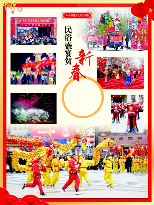 新春时节的天水,处处张灯结彩、人潮涌动,一场场春节文化活动把城市的年味推向高潮。街巷广场成为欢乐的舞台,传统民俗与现代文旅相映成趣,喜庆氛围在全城铺展开来。民间文艺展演轮番登场,锣鼓声声催热人气,秧歌舞步轻快翻飞;绚烂烟花点亮城市天际,流光溢彩映照团圆笑脸;一盏盏匠心花灯次第绽放,传统民俗、地域文化与光影艺术在灯火中交融,映出温暖而厚重的城市底色,年味在欢声笑语中变得可触可感。一个个镜头定格下的,是天水人对传统的珍视、对生活的热爱,也是这座城市在烟火人间中焕发出的蓬勃活力与文化自信。