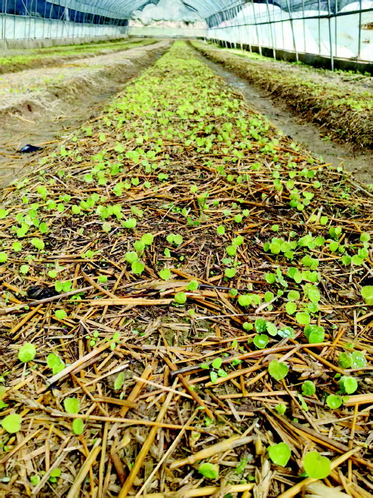 ▲育苗设施培育的中药材苗子长势良好