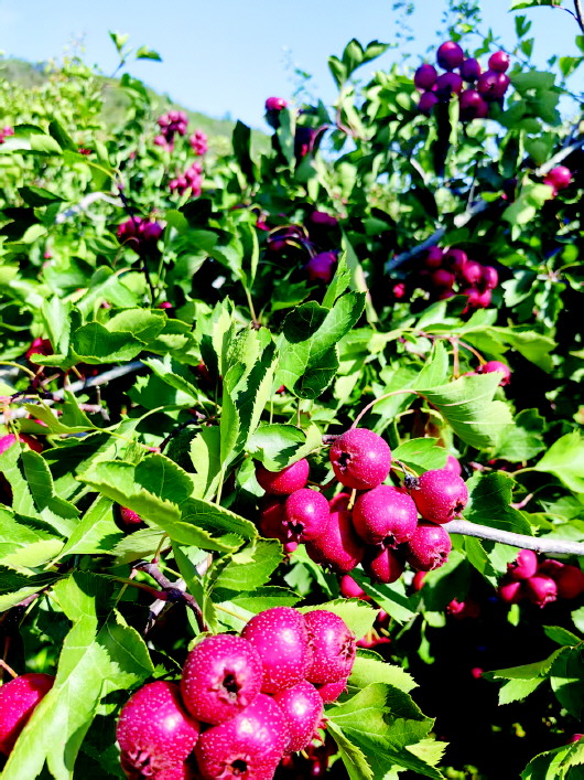 ▲硕果累累的红山楂宛如一颗颗红珍珠