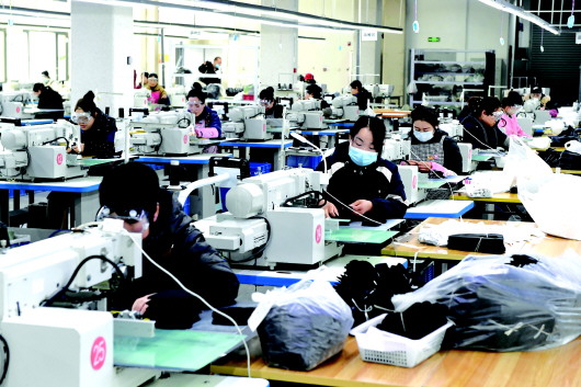 3月16日,陇山驰体育用品有限公司的生产车间内机器轰鸣,工人正全力赶制订单。