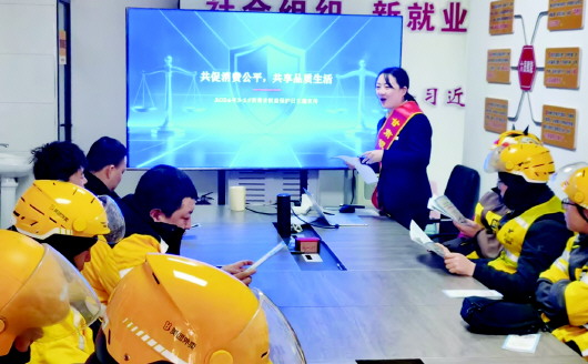 针对“两司两员”等新就业形态群体,开展精准化、定制化金融宣教活动。为“两司两员”群体送去专属金融知识礼包,依托“两司两员”工作场景覆盖面广的优势,引导其化身“金融知识宣传员”,在日常工作过程中向周边群众普及消保知识,切实守护新就业形态群体的“辛苦钱”,织密织牢区域金融安全防护网。