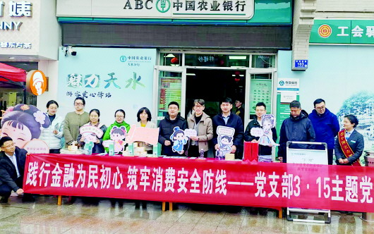 本报讯 为切实提升消费者权益保护意识与金融风险防范能力,营造安全放心的金融消费环境,在“3·15”国际消费者权益日来临之际,工行天水分行积极践行大行担当,组织金融力量走进社区、单位、企业,在营业网点、街头巷尾组织开展别开生面、精准直达、丰富多彩的特色金融宣教活动,切实将消费者权益保护落实到“最后一公里”。