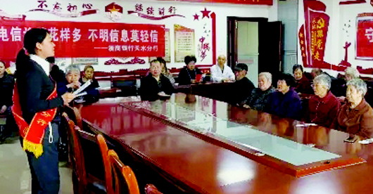 本报讯 为进一步提升金融消费者的权责意识和风险防范能力,构建和谐健康的金融消费环境,在“3·15”国际消费者权益日到来之际,建行天水分行紧紧围绕“金融消保在身边 保障权益防风险”等主题,精心组织、周密部署,在全辖范围内开展了一系列内容丰富、形式多样的金融消费者权益保护教育宣传活动。