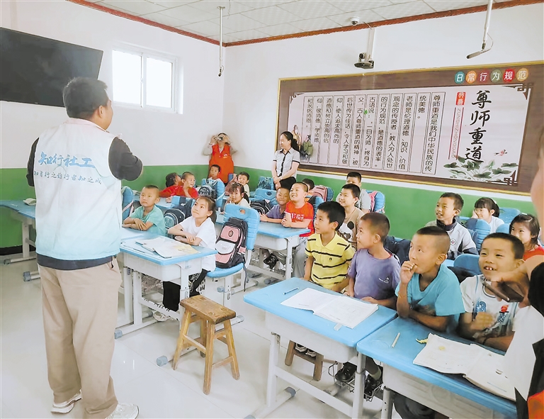 在海原开展社工服务工作期间,徐龙发现,大多数留守儿童与祖父母或外祖父母一同生活,因为缺少父母的陪伴、监督,学习成绩不是很理想,为此他推出“守护花蕾 相伴成长”行动。每天走访困境儿童进行心理疏导、与孩子们互动游戏是常态。