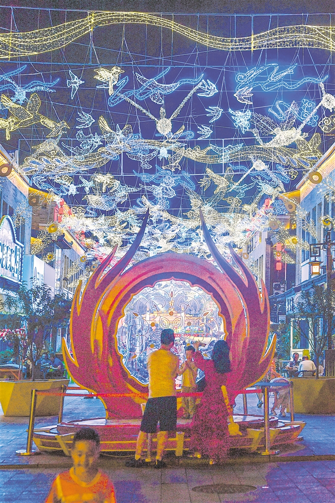 作为银川市沿贺兰山一线旅游景区最为集中的地区,西夏区充分发挥夜间文旅消费集聚区、旅游休闲街区、度假区等集聚带动作用,持续丰富旅游演艺、主题夜游、国风国潮等,形成“文旅+多种业态”的夜经济圈,吸引了一波又一波人流前来打卡。