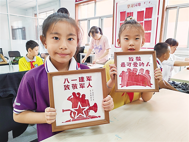 7月30日,一位小朋友在展示自己的非遗作品。当天,银川市金凤区满城北街街道紫阳社区组织非遗竹编画DIY活动,传承非遗文化,庆祝“八一”建军节,丰富社区青少年假期生活。 本报记者 杨超 摄