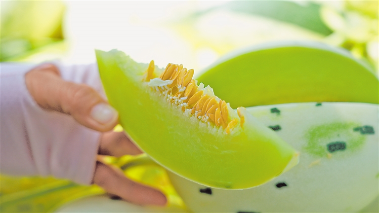 据悉,月牙湖乡的蜜瓜品牌“都知果”“月牙蜜”获得绿色食品认证,通过各种活动推介,产品声名远播。
