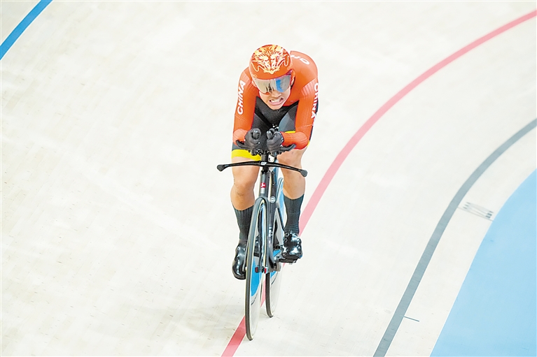 8月29日,李樟煜在比赛中。当日,在巴黎残奥会场地自行车男子C1级3000米个人追逐赛中,李樟煜赢得本届残奥会中国体育代表团首枚金牌。 新华社发