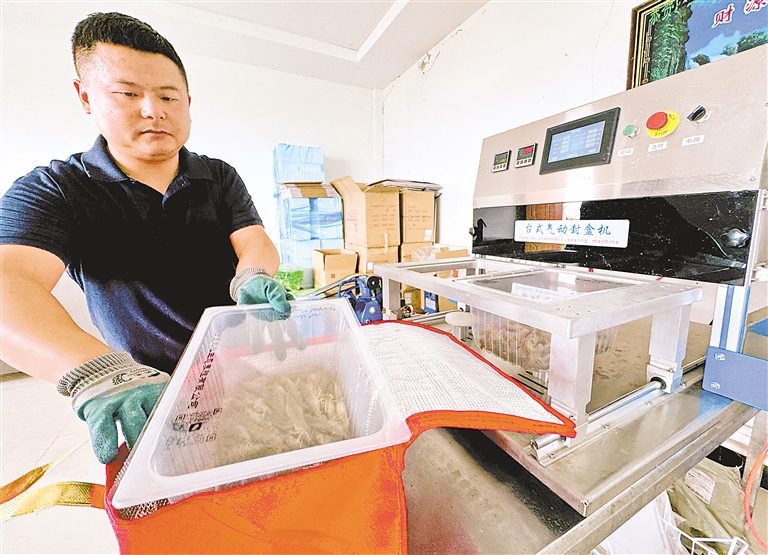 新鲜捕捞的南美白对虾经称重、包装后第一时间送至消费者餐桌。