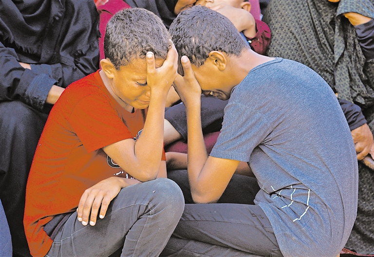 8月26日,在加沙地带南部城市汗尤尼斯的一所医院里,人们哀悼逝去的亲人。据巴勒斯坦加沙地带卫生部门8月25日发布的数据,去年10月新一轮巴以冲突爆发以来,以色列在加沙地带的军事行动已造成超过4万名巴勒斯坦人死亡、逾9.3万人受伤。 新华社/路透