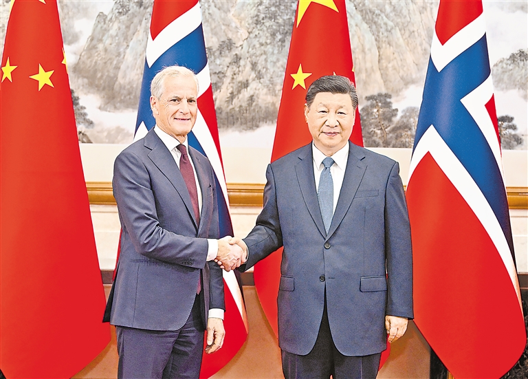 习近平强调,回顾中挪关系70年历程,友好和合作是主旋律。历史经验告诉我们,要保持两国关系平稳健康发展,最重要的是坚持相互尊重、求同存异,包括尊重彼此核心利益、照顾对方重大关切。中挪两国经济互补性强,各领域合作成果丰硕。双方可以结合各自优势,不断扩大绿色环保、能源转型、海事航运、农渔产品、电动汽车等领域务实合作,加强教育、科技、文化、旅游、冬季运动等领域合作,密切人员往来特别是青年交流。中挪在维护世界和平和安全、应对气候变化、保护生物多样性等全球性挑战方面有广泛共识,中方愿同挪方加强在联合国等多边平台沟通和协作,践行真正的多边主义,推动平等有序的世界多极化、普惠包容的经济全球化。希望挪方为推动中欧关系健康稳定发展发挥积极作用。