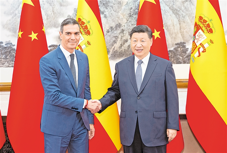 习近平指出,当今世界变乱交织,中国和西班牙都是具有责任感和使命感的国家,都倡导多边主义和自由贸易。中方愿同西班牙扩大面向全球南方的第三方市场合作,加强在联合国、二十国集团等国际组织中的沟通配合,为世界和平稳定和人类进步事业注入更多正能量。