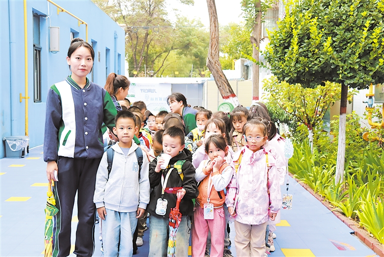 今年23岁的信春梅,是去年6月毕业于银川科技学院学前教育专业的一名新手教师。回想起去年9月站在教室里和小朋友们“大眼瞪小眼”的时刻,信春梅说:“我那时很茫然,甚至想不起来我在课堂上学到的内容,听到孩子们哭也想问‘为啥’?”但当慢慢度过新手期,站在孩子的角度上,信春梅意识到:从他们的角度出发,只是昨天和爸爸妈妈们来过这个地方一次,为什么今天我就得留在这里和一群陌生人相处,爸爸妈妈会来接我吗?想爸妈了怎么办?