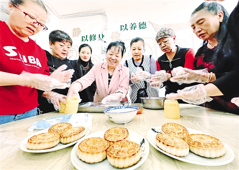 9月11日,银川市兴庆区银古路街道云和社区联合辖区单位开展“籽籽同心话中秋 佳节共叙邻里情”主题活动,邀请社区居民、退役军人观看文艺演出,一起制作月饼、艾草锤,喜迎中秋佳节。 本报记者 马楠 王洋 摄