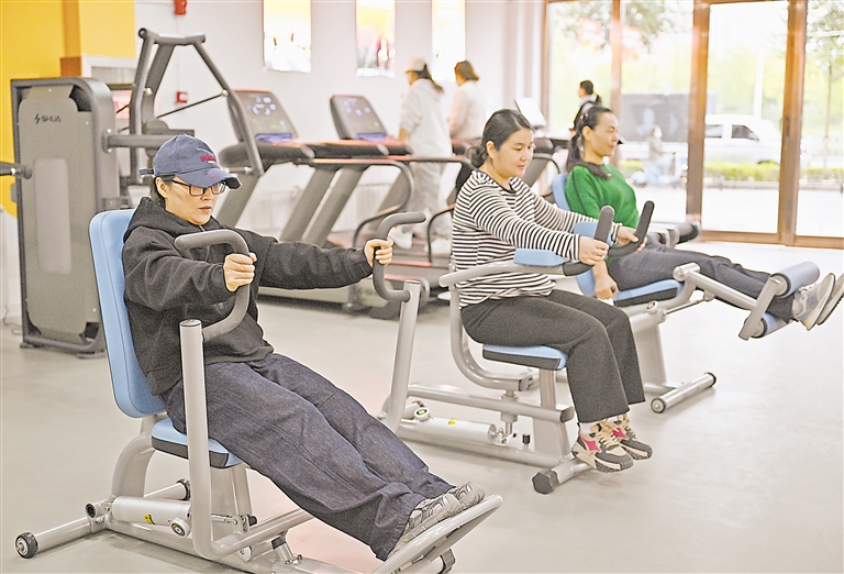 9月11日,居民在银川市清苑社区运动健康中心健身。该健康中心由银川市体育局联合企业共同打造,面积385平方米,是以社区为载体,中青年和老年人为主体,促进全民健身及健康为目的新型社区百姓健身房。 本报记者 左鸣远 摄