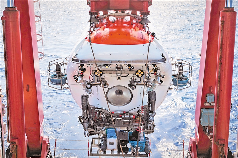 9月11日,“蛟龙号”结束下潜返回“深海一号”船后甲板。当日,“蛟龙号”载人潜水器在维嘉海山完成2024西太平洋国际航次科考最后一个潜次下潜作业。科考期间,“蛟龙号”在西太平洋海域完成了18次下潜作业,搭载十余名中外科学家探索深海。新华社发